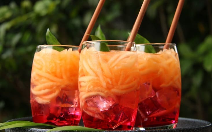 • Campur blewah yang telah diserut dengan dan biji selasih, gula cair, es batu, dan air putih secukupnya.