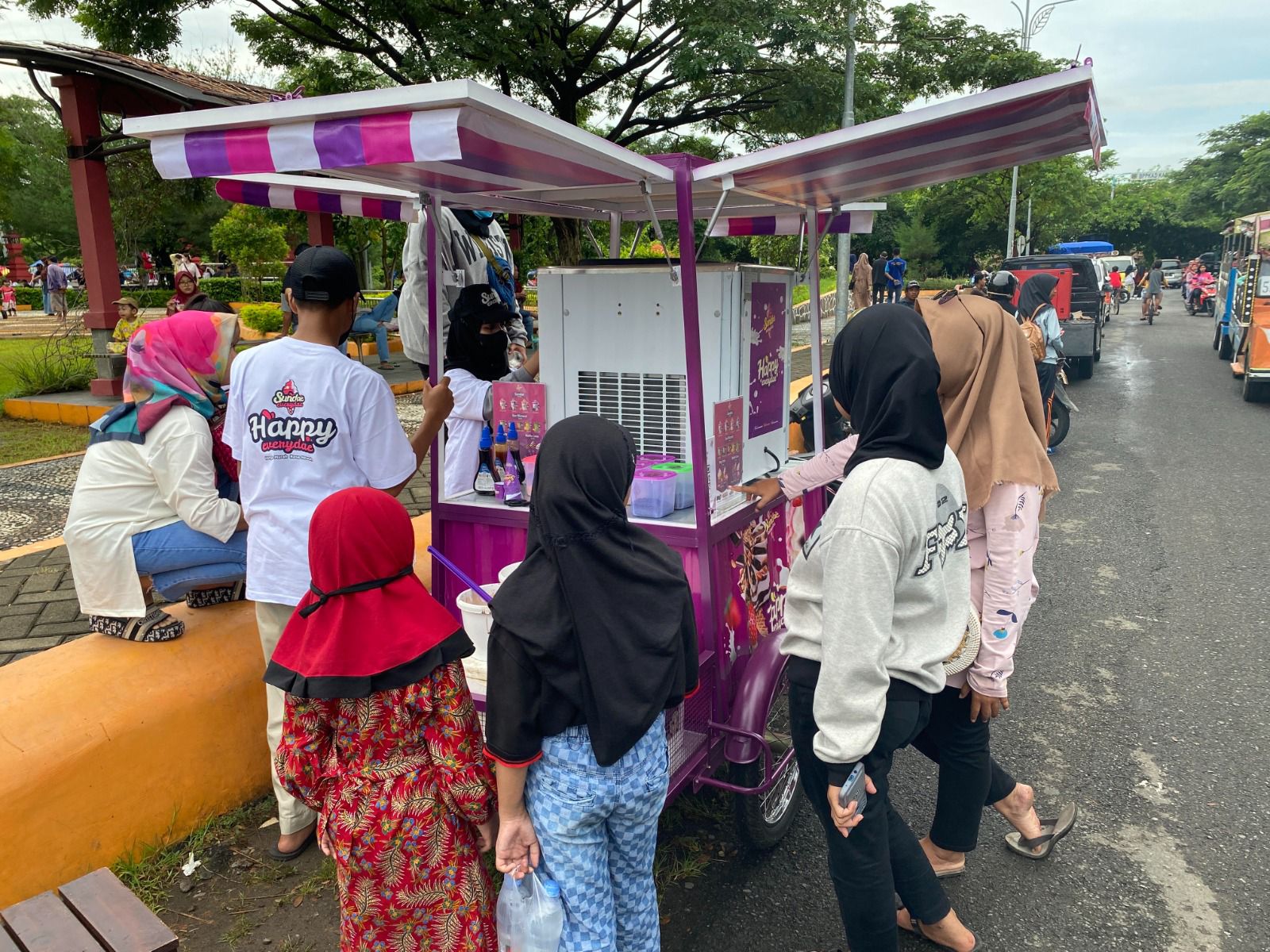 • Offline: Jual di tempat strategis seperti depan sekolah, taman kota, event komunitas, atau pasar malam. Gunakan booth kecil atau gerobak es krim yang menarik dan bersih.