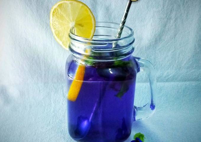 Teh Bunga Telang dengan Madu dan Lemon