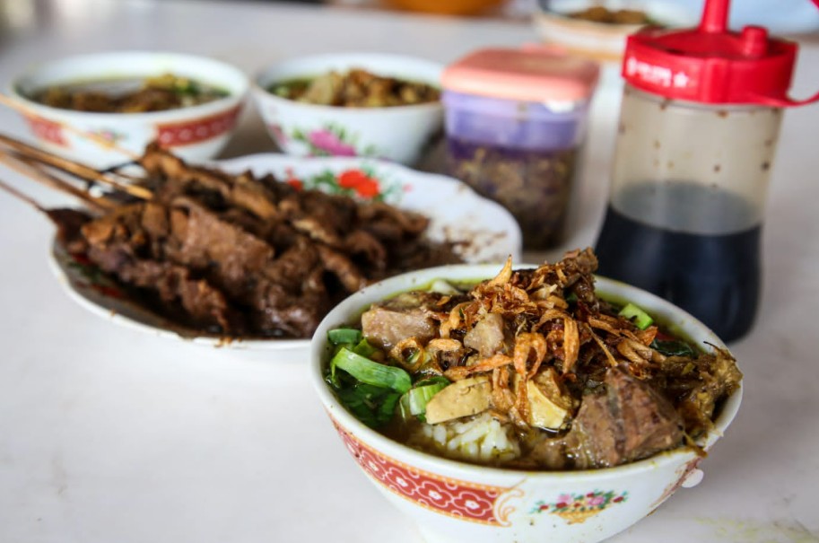 • Daging Sapi Empuk – Biasanya menggunakan daging sapi atau jeroan yang direbus hingga lembut.