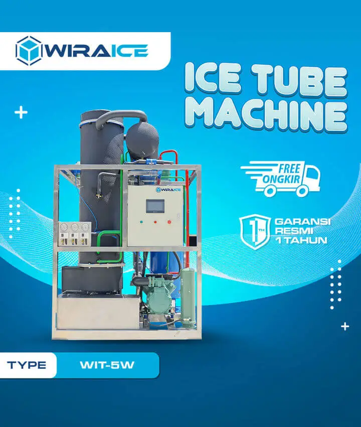 Mesin Ice Tube WIT-5W, adalah mesin es batu penghasil es kristal dengan bentuk tube/tabung atau silinder dengan ciri khas lubang di kedua sisi. Mesin Ice Tube ini dapat memproduksi ice tube sebanyak 5 ton perhari. Ice tube saat ini sangat populer di kalangan para pebisnis kuliner Restoran dan kantin, karena sifat dan ukurannya yang besar serta bentuknya yang di rasa sangat efektif memberikan rasa dingin untuk beragam jenis minuman.