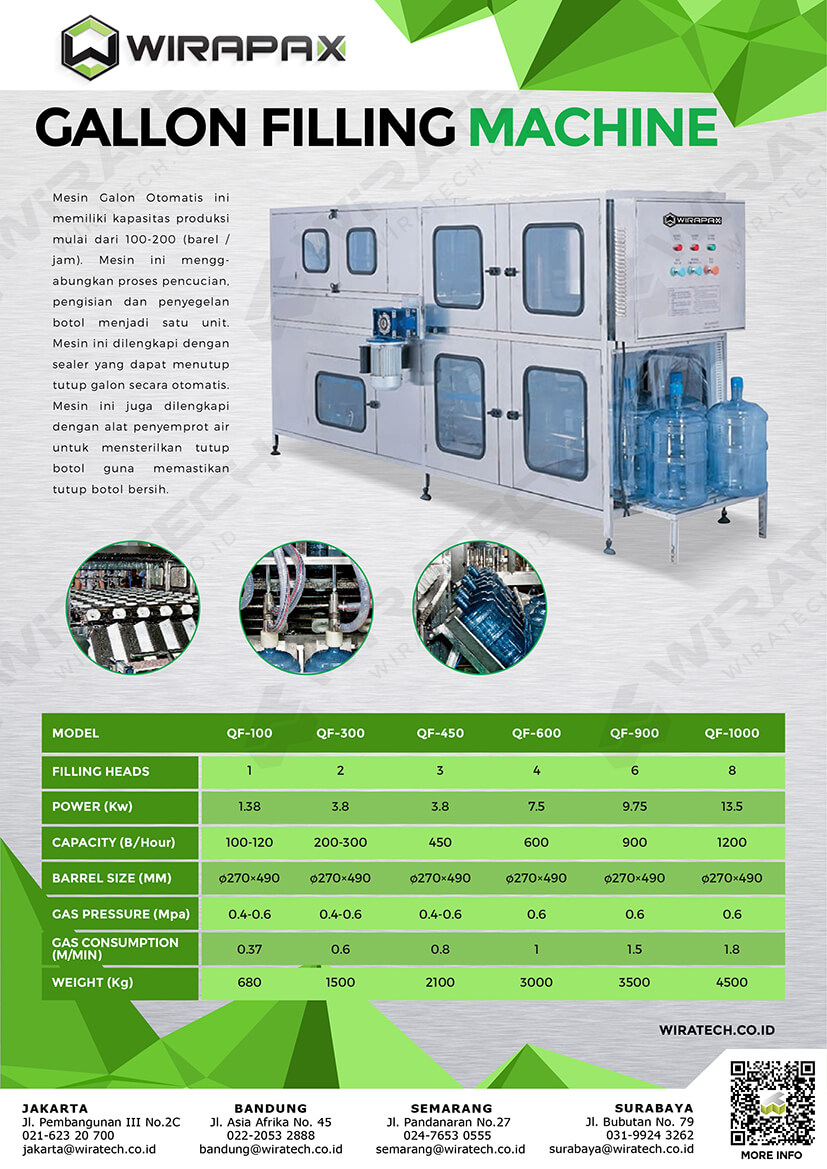 This filling line specially for 3-5gallons barreled drink water, with type QGF-150, QGF-240, QGF-300, QGF-450, QGF-600, QGF-900,QGF-1200, It intergrates bottle washing, filling and capping into one unit, In order to achieve the purpose of washing and sterilizing, The washing machine use multi-washing liquid spray and-thimerosal spray, This thimerosal can be used circularly, The capping machine can cap barrel automatically , this line equips with water spraying device in order to ensure those caps sterilizer and clean. it also can automatically carry out barrel, washing, sterilizing, filling, capping, counting and products discharging, with complete function, modern design and high degree of automation, it is a new kind of barreeled water auto-production line, which intergrates mechanism, electricity and pneumatics technologies together .