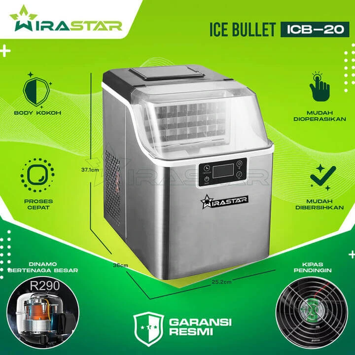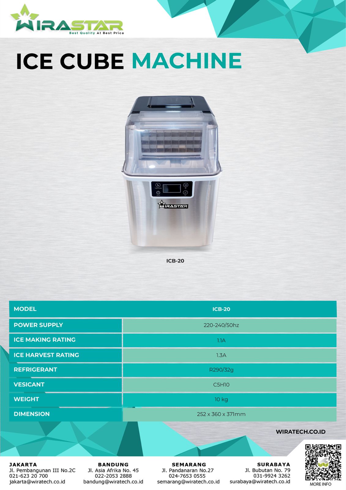 Mesin Es Batu ICB-20 sangat cocok di gunakan untuk bisnis kecil rumahan karena mampu membuat es batu (ice cube), karena produksinya sangat cepat dan berkualitas. Besarnya minat terhadap bisnis kuliner di bidang cafe tentu saja membuat mesin ini kerap di cari dan di beli. Maka dari itu tak ada salahnya jika anda berinvestasi dengan mesin yang tepat demi kelangsungan bisnis kuliner anda.